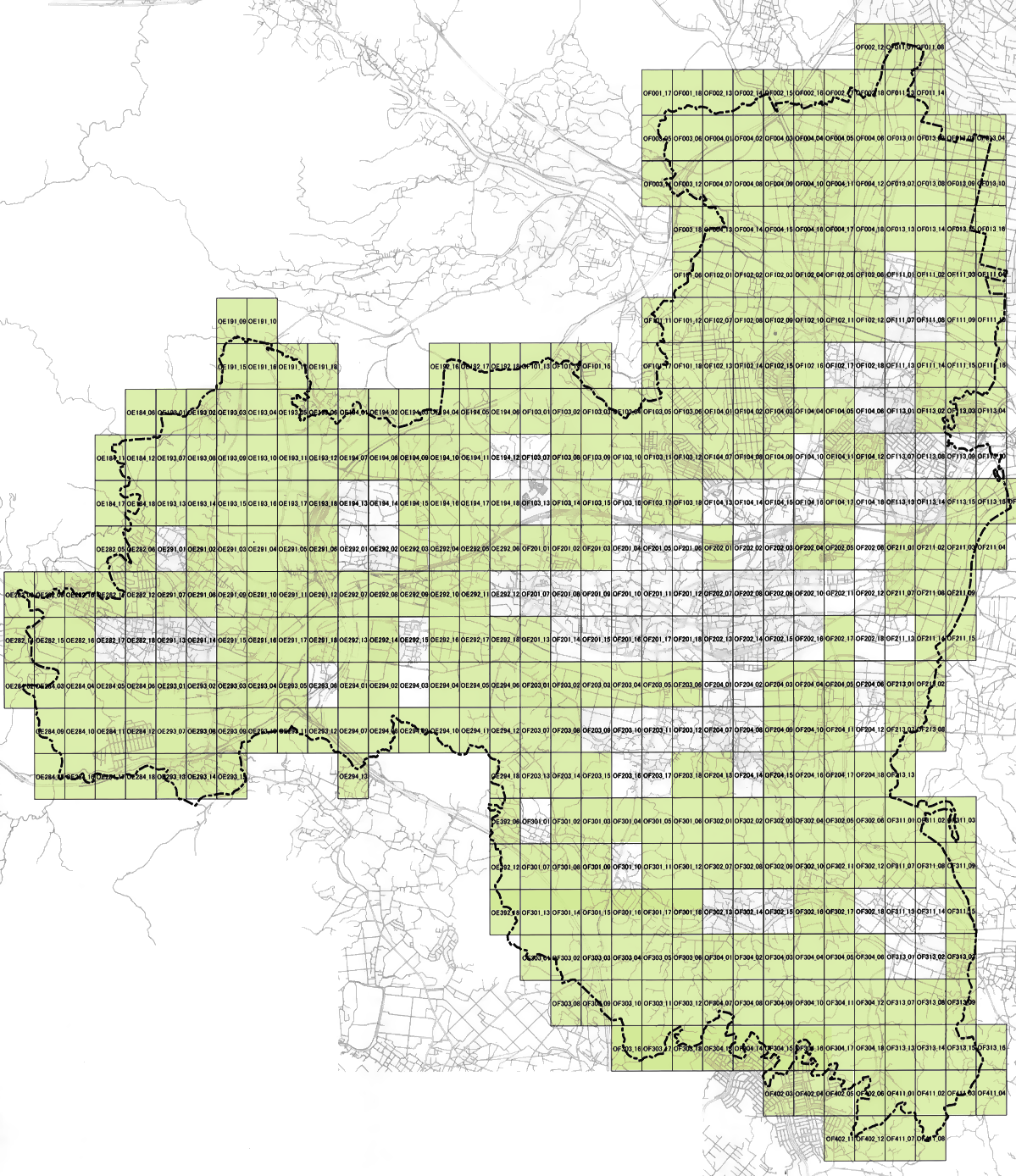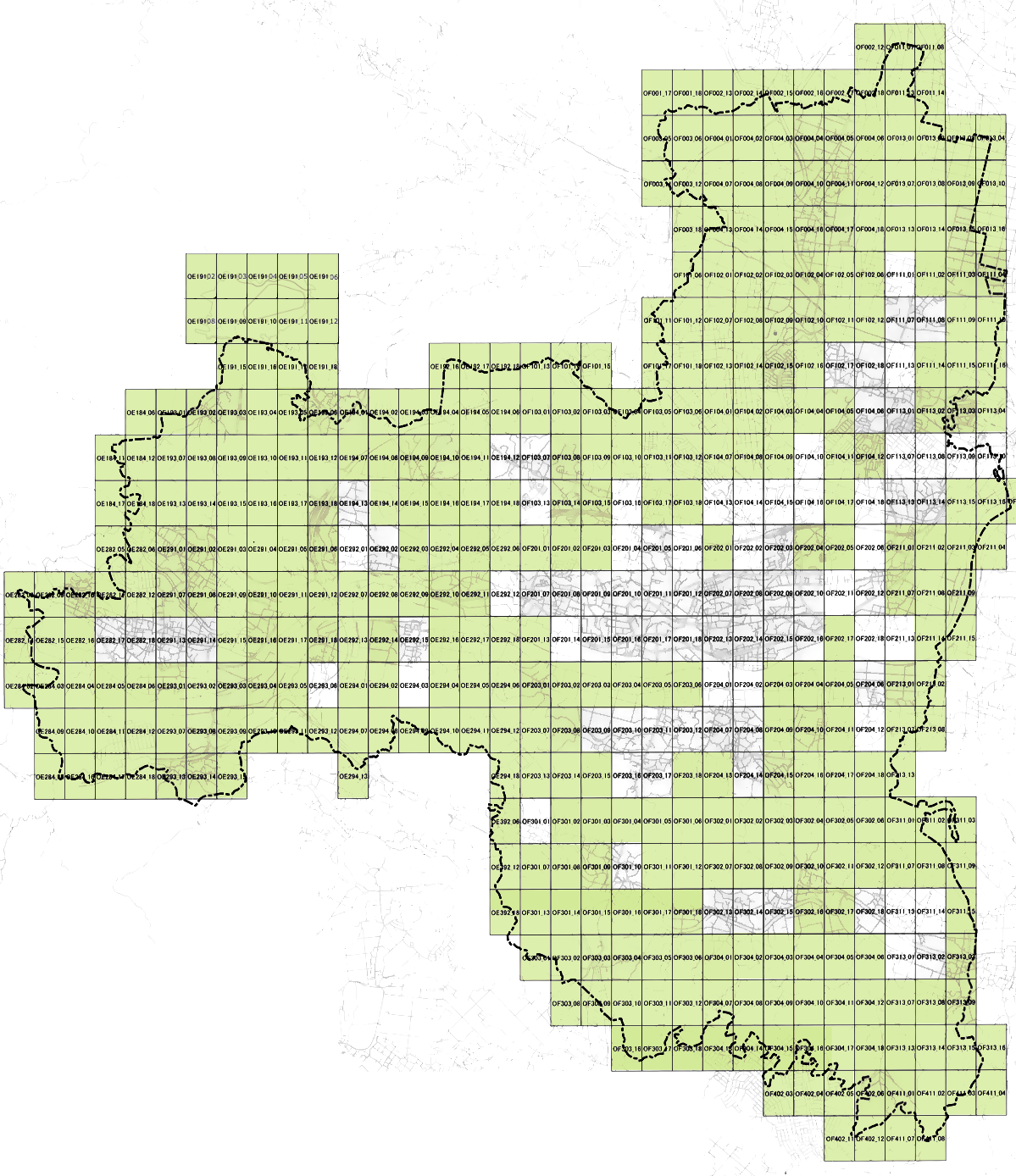 ※地図の緑色部分が、調査が終了し、指定道路図が閲覧できる場所です。