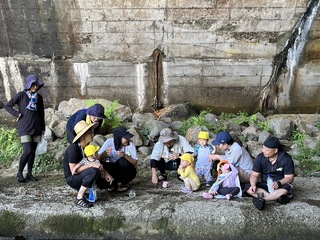 小さい子たちは生き物探しやふれあい遊びをしたり、浅瀬でハイハイをしたり、水の掛け合いをしたり、ゆったり川で過ごしました。たくさん遊んだ後は、みんなでつくった梅ジュースを一緒に飲んでほっこり休息タイム。