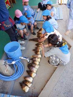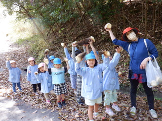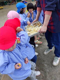 保護者の人に「たけのこ掘りに来てね」と声を掛けていただき、3・4・5歳児がたけのこ堀りをさせていただきました。