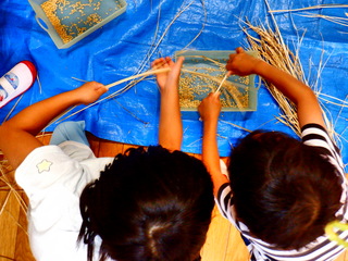 少し稲をいただいたので、割りばしを使った「脱穀」や、すり鉢を使った「もみすり」も行いました。田植えや稲刈り、脱穀、もみすりを経験し、自分たちが食べているお米がどんな流れを経て食べられるようになるのかを知ることができました。米一粒まで大切に食べようとする気持ちにつながってほしいと思います。