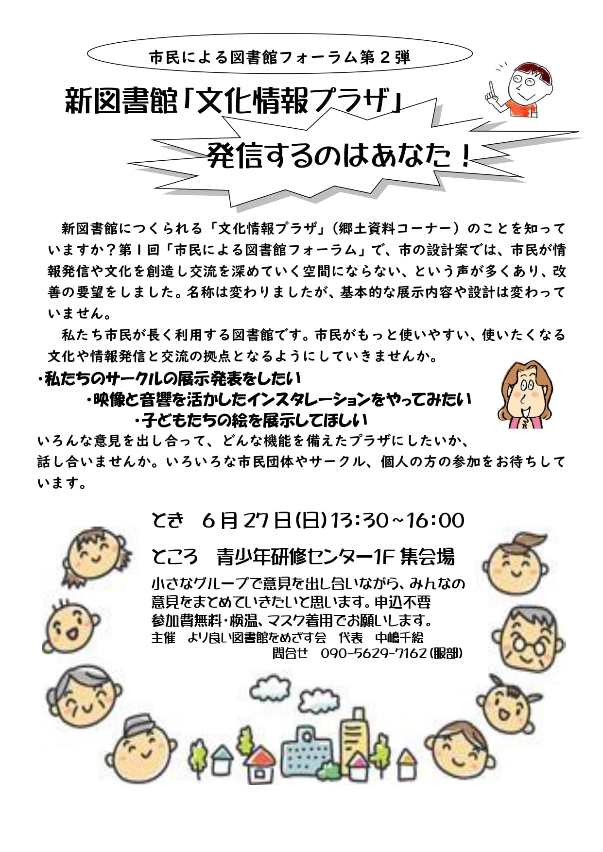 - より良い図書館をめざす会 TEL:090-5629-7162(服部)