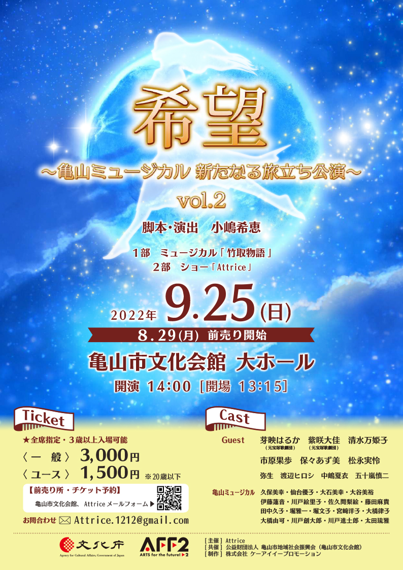 - 亀山ミュージカル『希望~亀山ミュージカル新たなる旅立ち公演~vol.2』を上演します。
