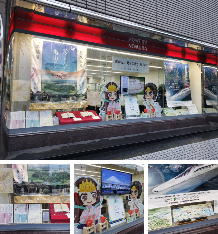 「かめやま文化年2020」のプログラムのひとつとして、野村證券株式会社 津支店(津駅東口前)のショーウィンドウを活用した亀山市のPR展示を行います。