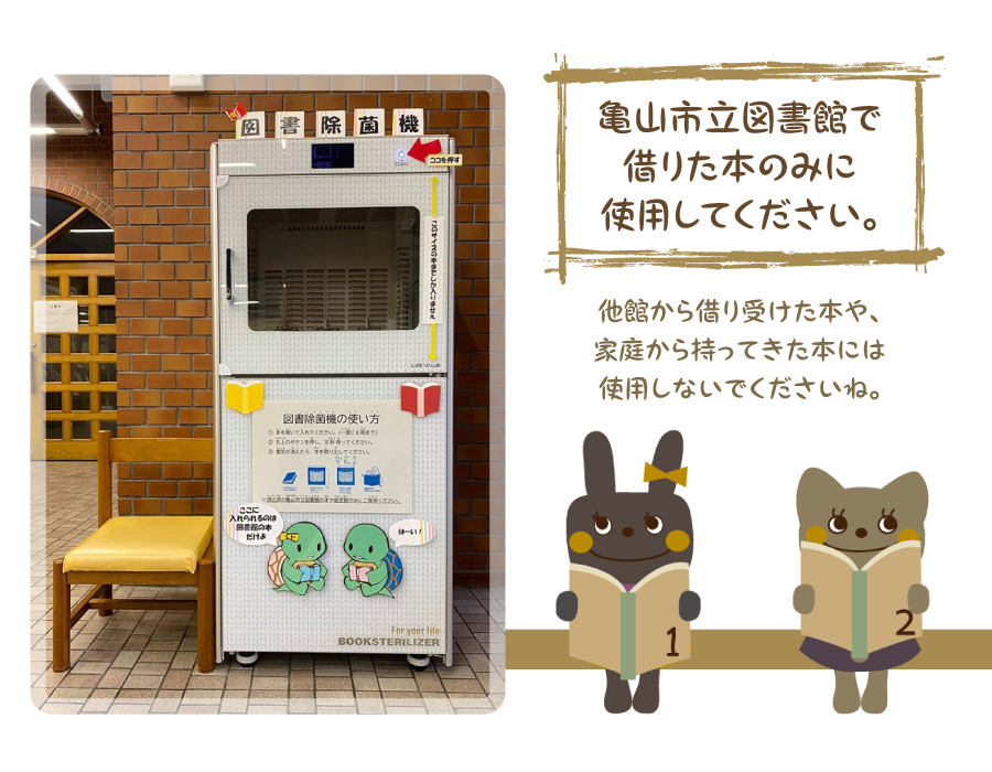 亀山市立図書館エントランスに、本の除菌機を設置しました。