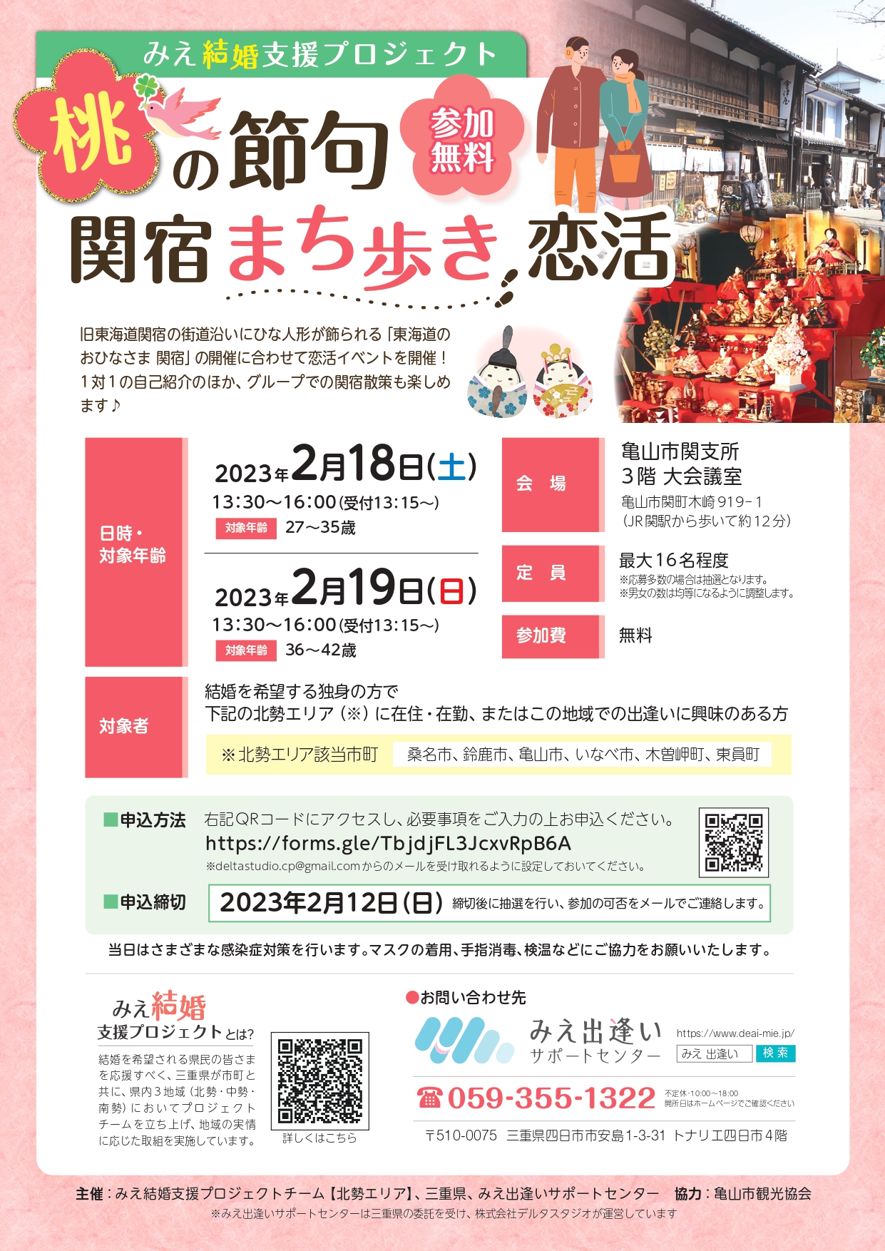 今回は、「東海道のおひなさま 亀山宿・関宿」の開催に合わせて、関宿散策も楽しめる恋活イベントを開催します。
